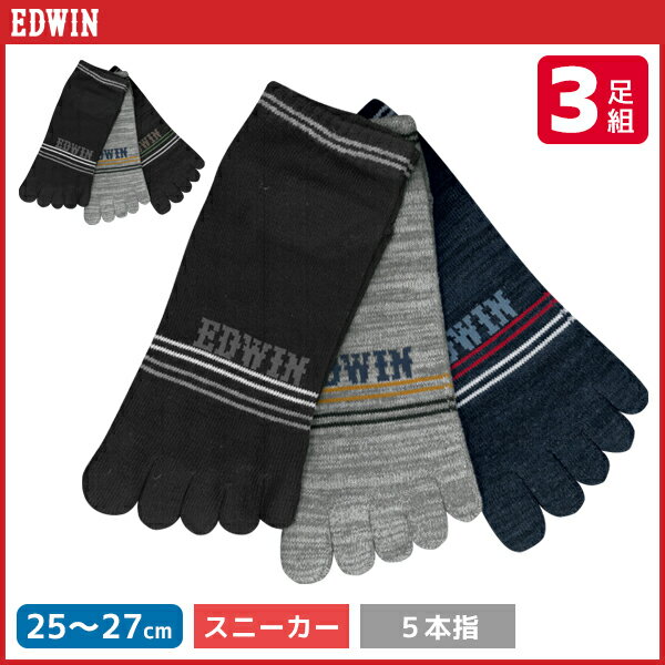 EDWIN エドウィン メンズソックス 5本指 3足組 ショート丈 グンゼ GUNZE くつした くつ下 靴下 | メンズ 黒 ブラック 男性 ソックス 紳士 ブランド メンズ靴下 紳士用靴下 紳士靴下 紳士ソックス メンズくつした 男性用靴下