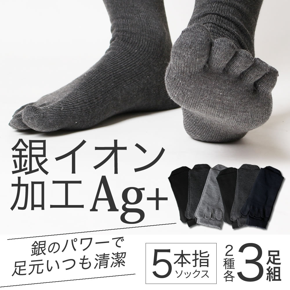 【3足組】メンズ 銀イオン加工 Ag+ 5本指ソックス かかと付 抗菌防臭 綿混素材 紳士靴下/ oth-ux-so-1708【宅配便のみ】